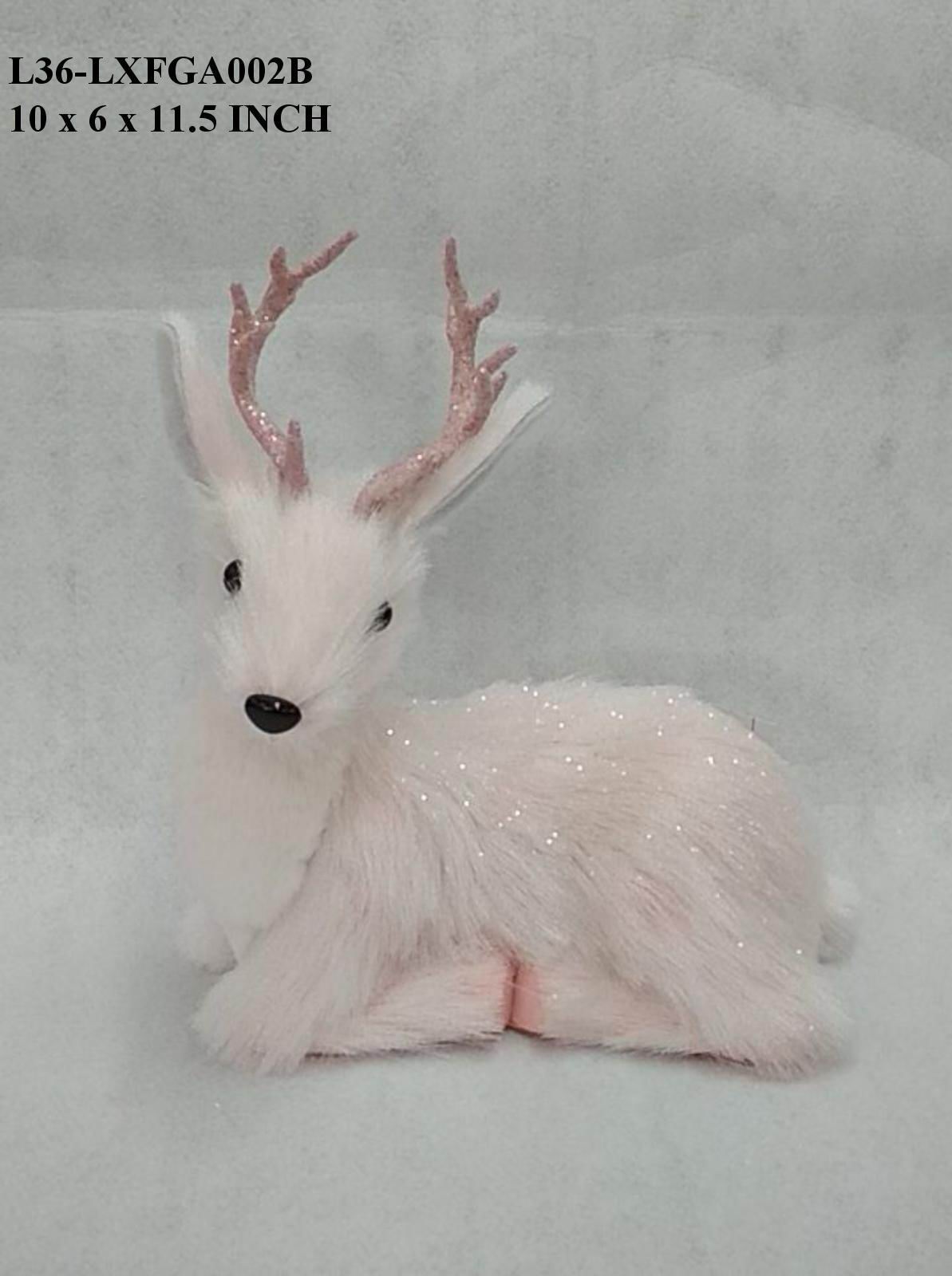 10.0x6.0x11.5 This charming sitting deer features a pristine white finish complemented by distinctive pink antlers, offering a contemporary twist on classic wildlife decor. Crafted from lightweight styrofoam, it combines durability with effortless portability for flexible display options. The unexpected pink accent introduces playful sophistication, making it an excellent choice for modern interiors, children's spaces, or those seeking statement pieces with personality.?