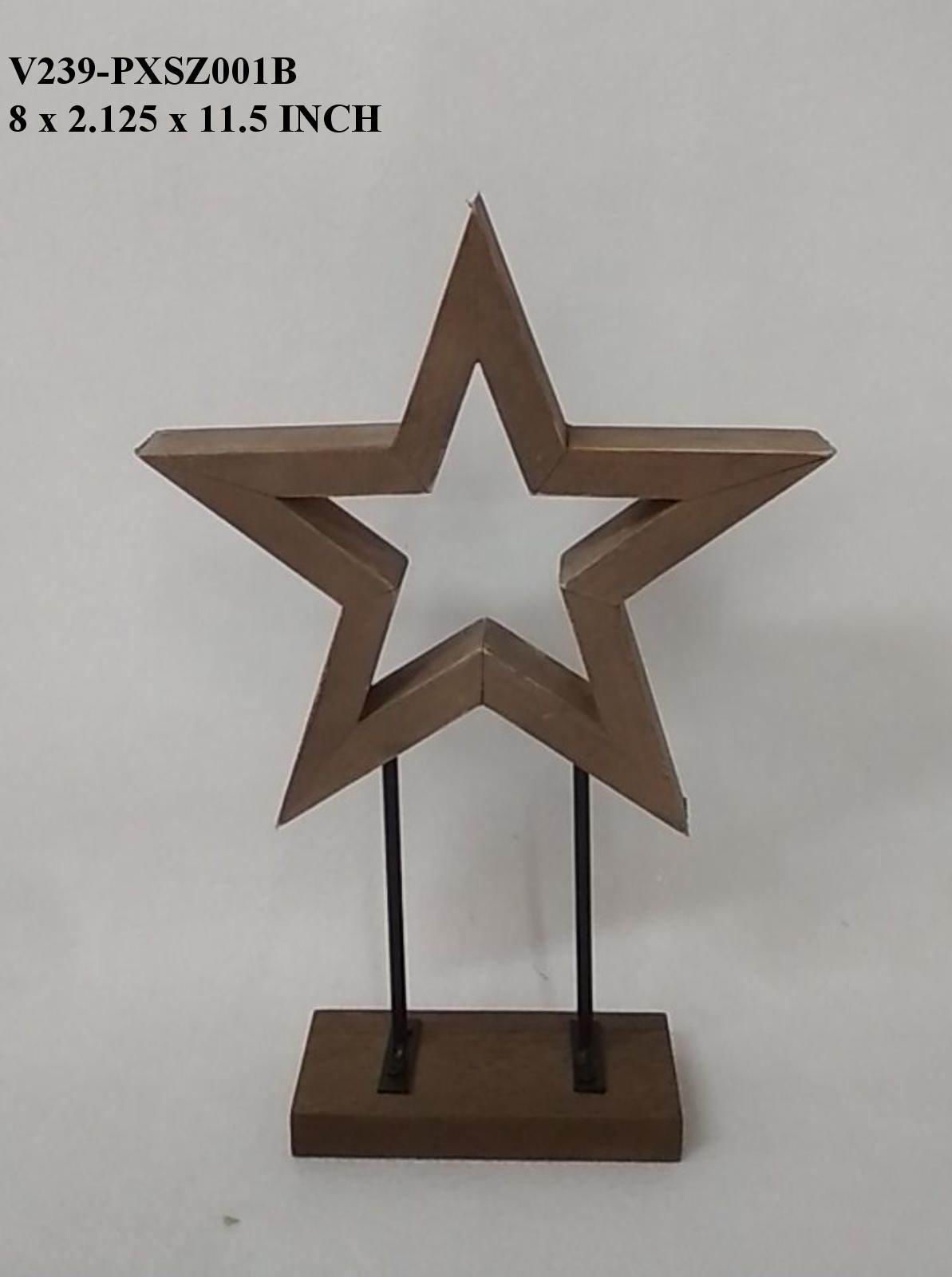 8.0x2.125x11.5 Elevate your interior styling with this refined wooden star tabletop decor piece. Crafted from quality wood, this sculptural accent brings geometric sophistication to shelves, desks, and display surfaces. The star's timeless form works seamlessly across design aesthetics¡ªfrom minimalist contemporary spaces to rustic-inspired interiors. Its natural wood finish showcases authentic grain patterns, adding warmth and organic texture to any room.?
