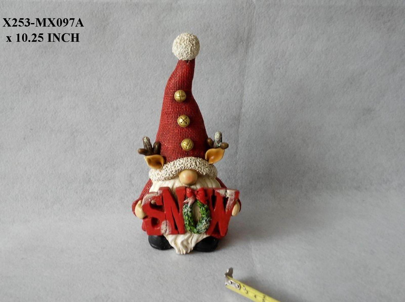 0.0x0.0x10.25 Polyresin Gnome with Christmas Signage This charming gnome figure holds a festive sign, expertly sculpted from durable polyresin with authentic holiday character and detailed craftsmanship. The signage element adds a personalized, welcoming dimension to seasonal displays and garden arrangements.? Versatile for garden beds, patio displays, entryway arrangements, or festive indoor vignettes.?