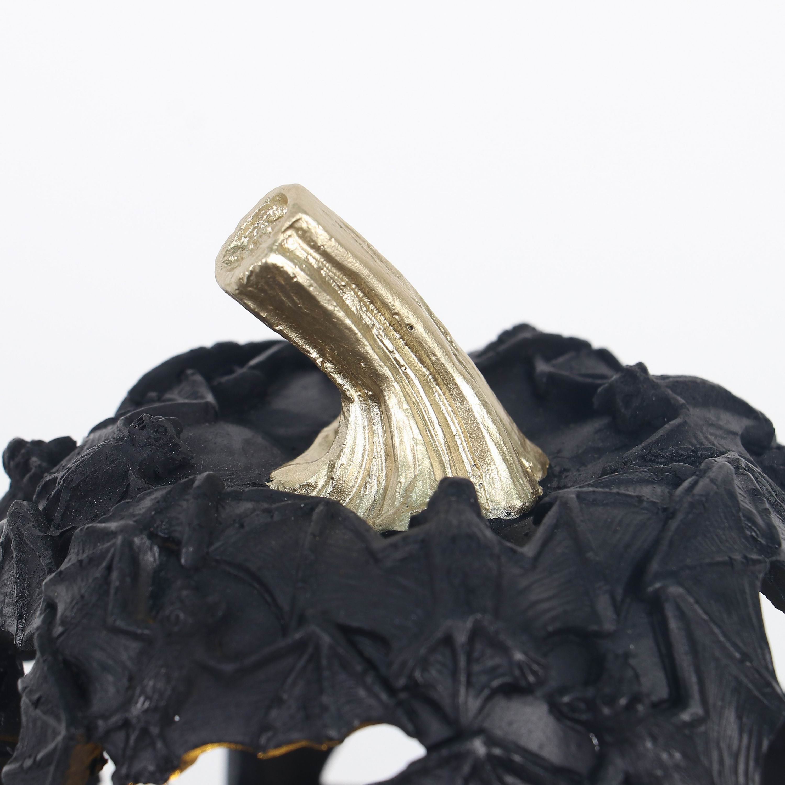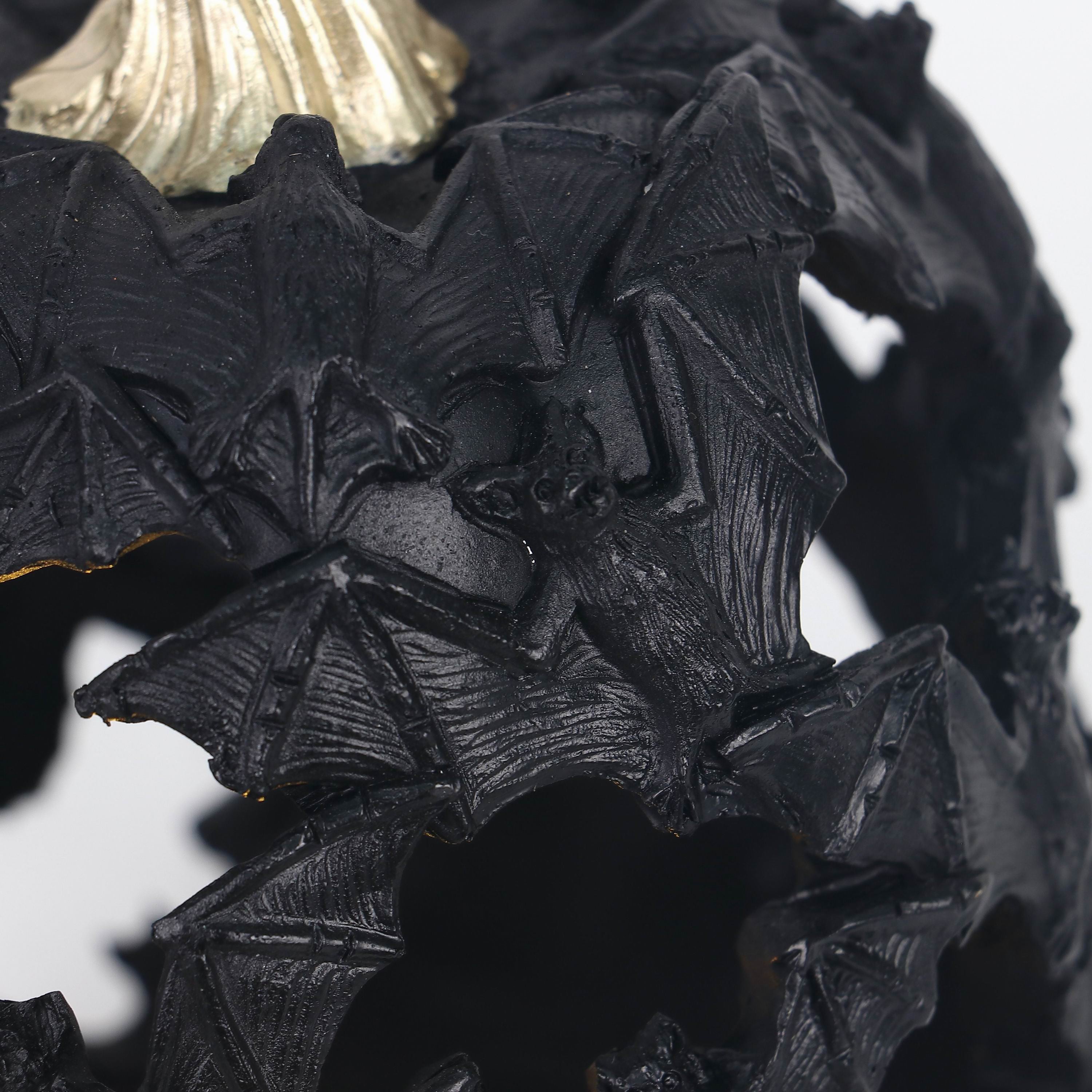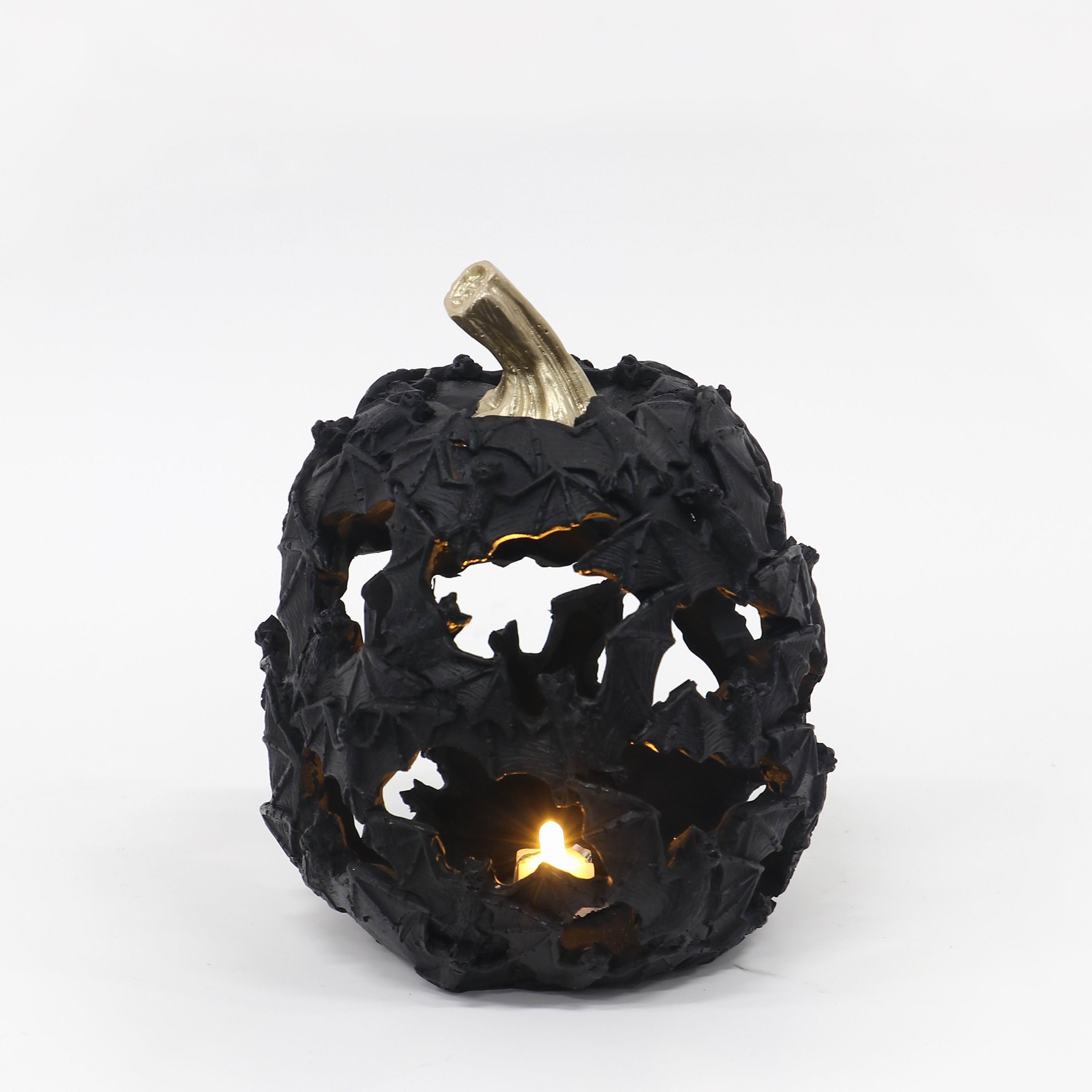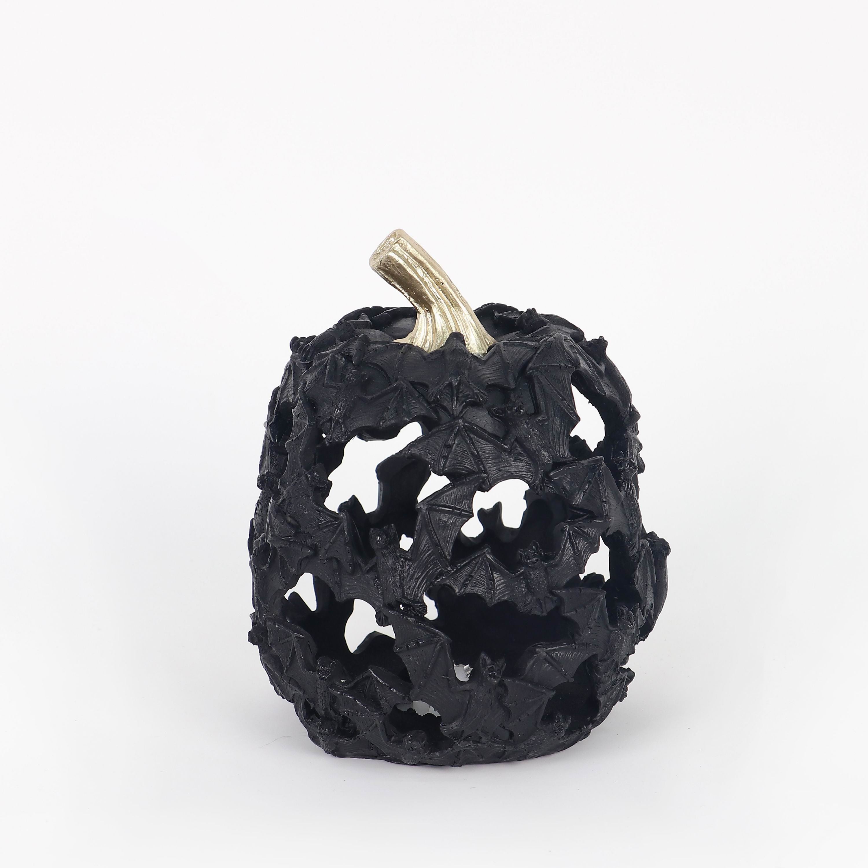 5" DIAX 6"H The LED Small Bat Pumpkin features a compact design with detailed bat accents and integrated LED lighting. Expertly crafted for both indoor and outdoor use, it provides a subtle yet striking glow that enhances Halloween decor with refined style and lasting quality.