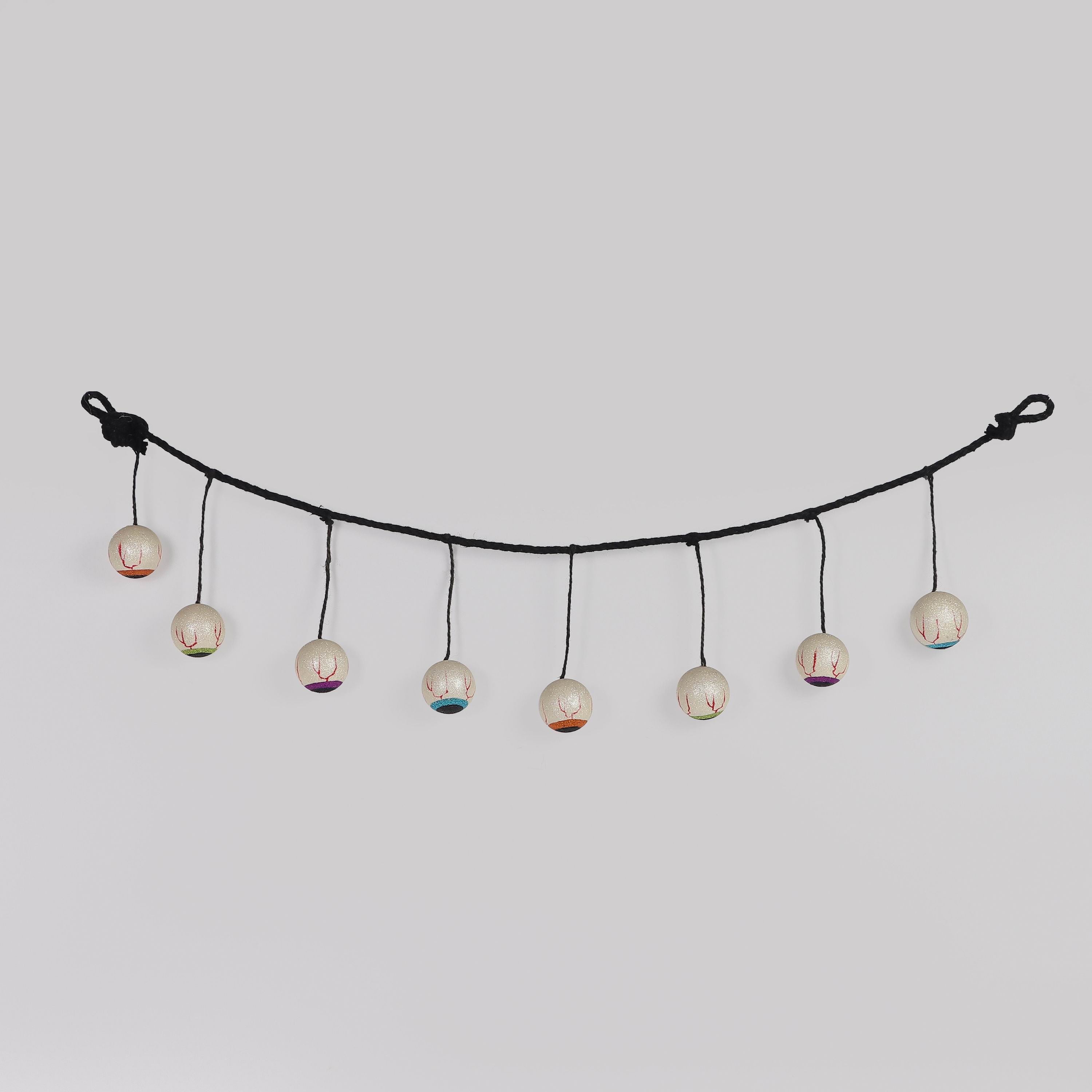45"L This 45-inch Halloween Eyes Long Garland features meticulously crafted eye motifs that bring a subtle, eerie ambiance to your seasonal decorations. Made from durable materials, it is suitable for both indoor and outdoor use. Its length offers versatile placement options¡ªperfect for adorning mantels, doorways, or banisters¡ªwith expert design that enhances your Halloween decor with a sophisticated touch.