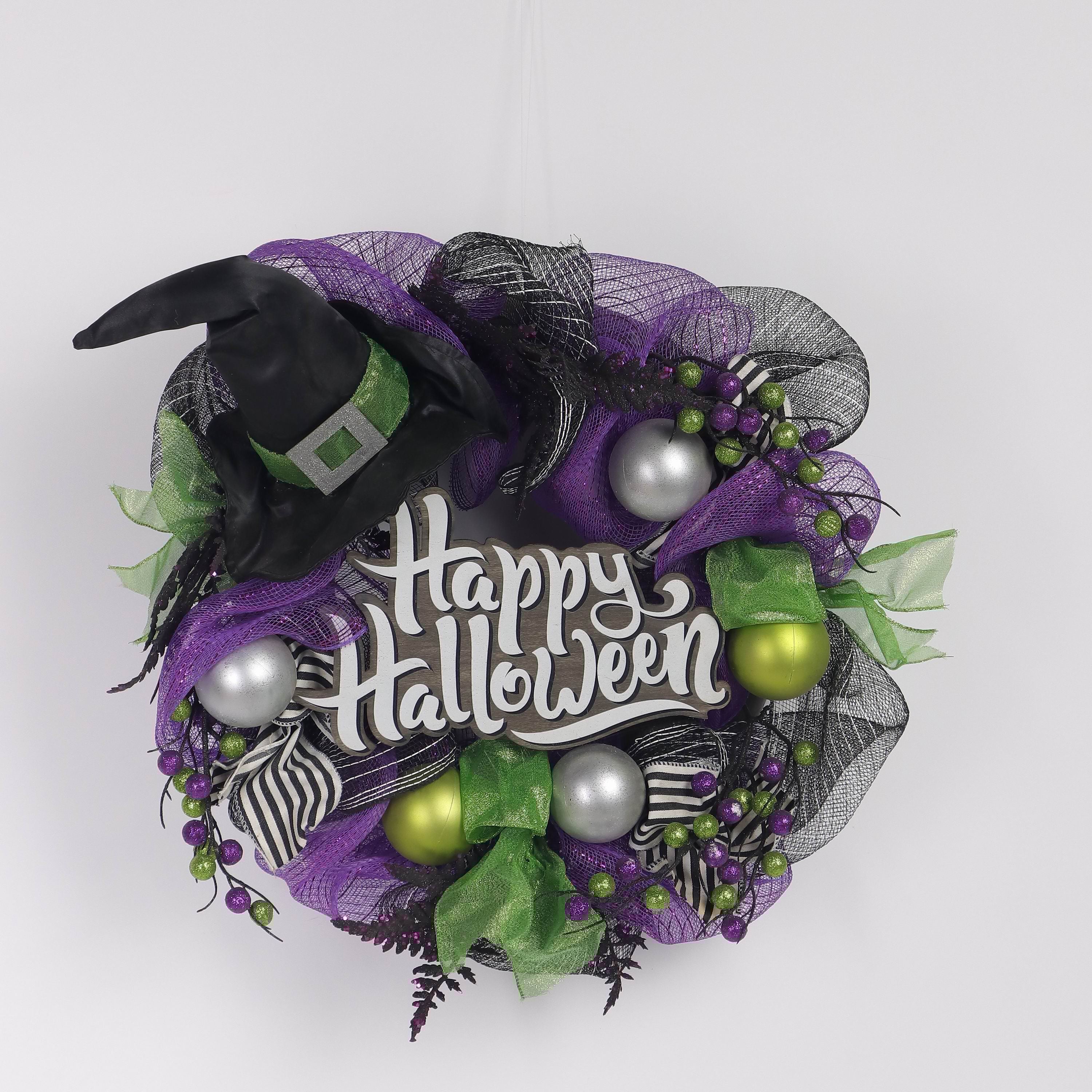 18" This Halloween wreath features expertly crafted seasonal elements paired with thematic signage, creating a striking decorative piece for your entryway or interior walls. Designed with quality materials, it combines durability and detailed craftsmanship to ensure lasting visual impact. Its size and design make it an ideal focal point that conveys festive charm and expert attention to seasonal decor.