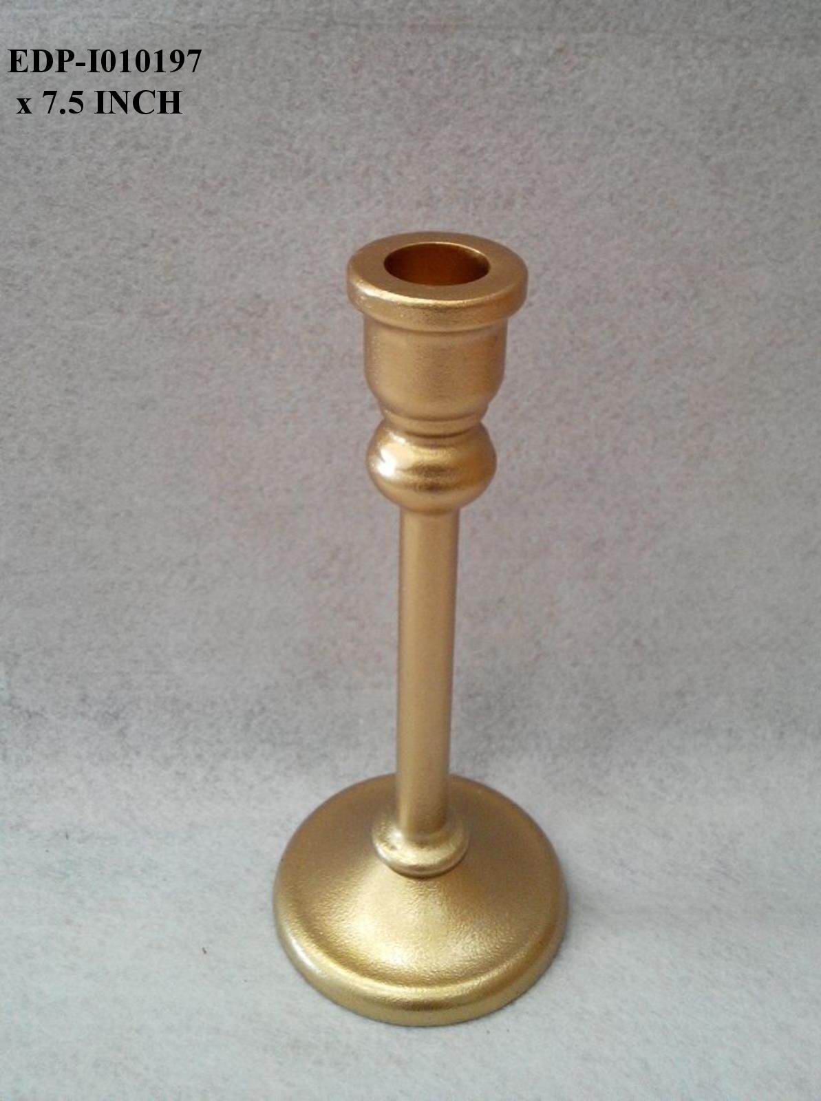 7.5" The Polyresin Gold Candle Holder features a durable construction with an elegant gold finish, combining practicality and refined style. Designed to securely support candles, it enhances ambient lighting while serving as a sophisticated decorative element. Its timeless design and sturdy build make it a versatile addition to a variety of interior settings.