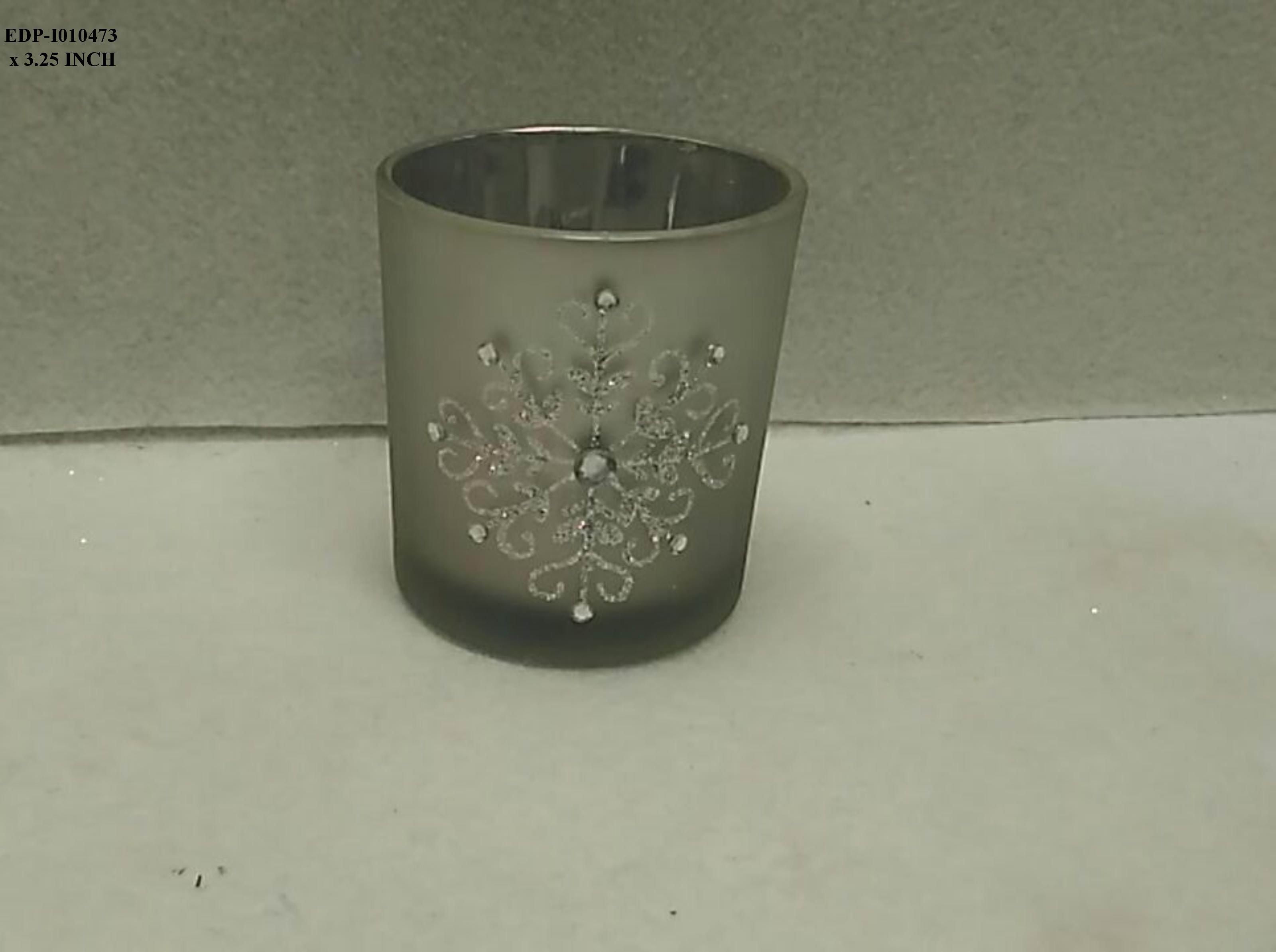 This exquisite Christmas glass candle holder features a luminous silver finish accented with a striking oversized snowflake design. Rising 3.25 inches, its graceful proportions command attention on mantels, tables, and shelves while maintaining refined elegance. The prominent snowflake motif captures the essence of winter's crystalline beauty, creating a focal point that draws the eye while candlelight dances across its surface. The silvery tone provides contemporary sophistication that complements both traditional and modern holiday aesthetics. Its transparent glass body allows warm illumination to radiate through while the metallic snowflake detail adds dimensional visual interest. Expertly crafted for durability, this holder transforms any space into a winter wonderland with understated luxury and timeless appeal.