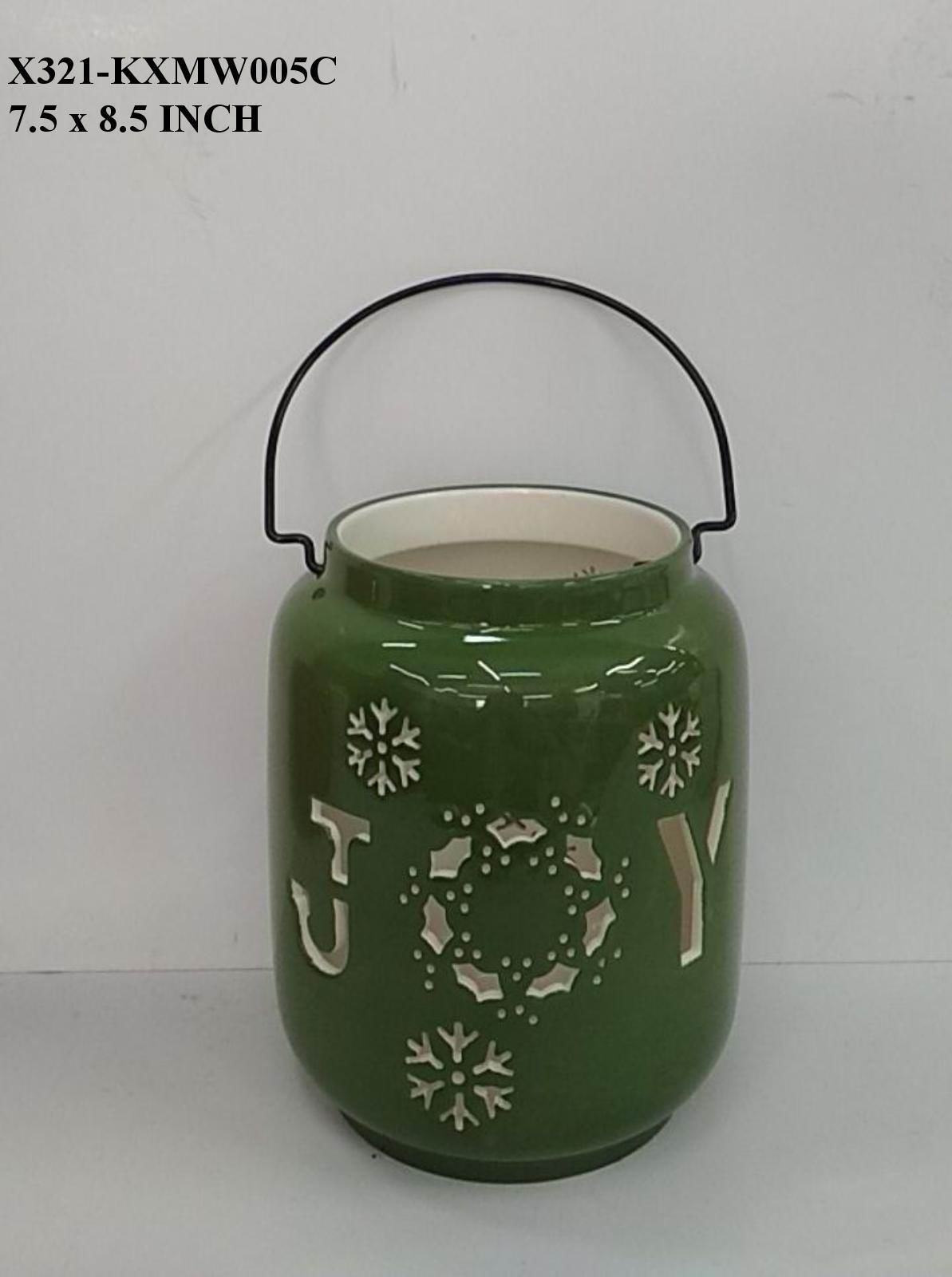 7.5x8.5x0.0 The Green Ceramic Lantern is expertly crafted with a rich, glossy finish and sturdy ceramic construction. Designed to provide gentle, ambient lighting, it adds a refined and natural accent to any interior or exterior space. Its elegant design and durable build make it a timeless addition to your decor collection.