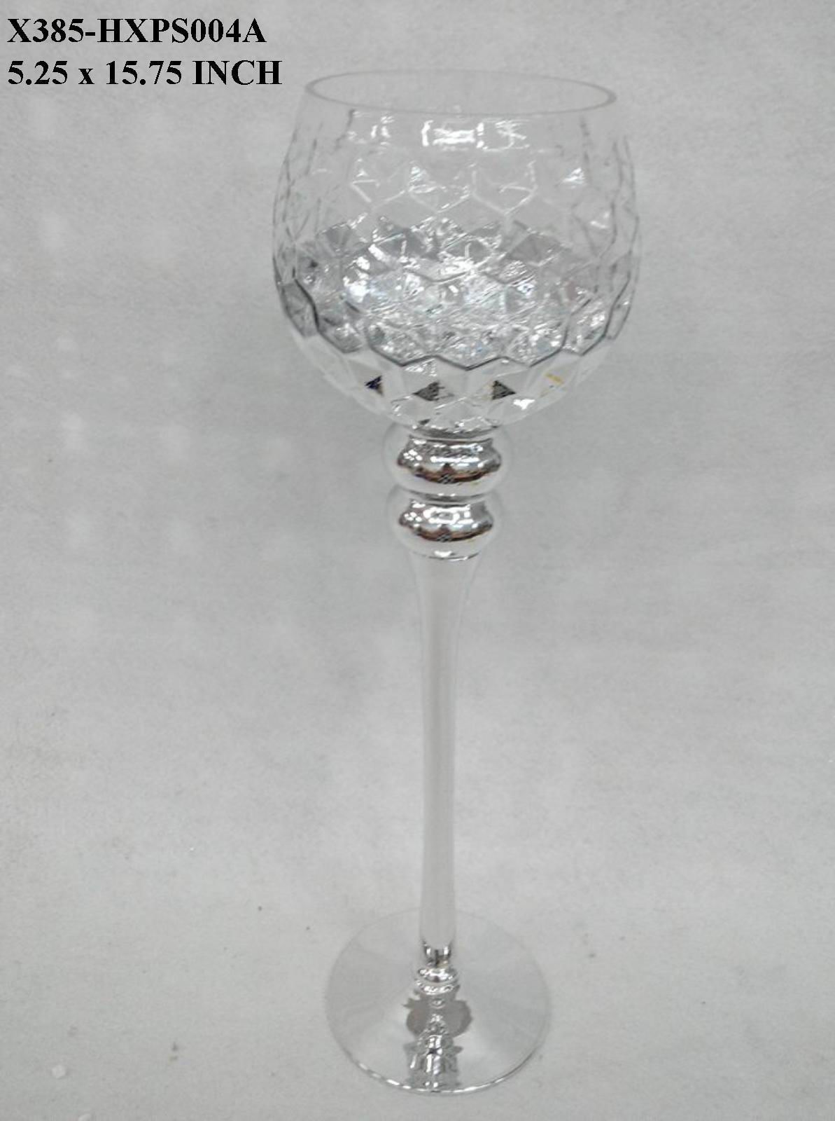 Elevate your decor with this sophisticated glass candle holder featuring textured detailing and semi-transparent clarity. Standing an impressive 15.75" tall with a 5.25" diameter base, its commanding height creates a striking vertical focal point. The textured surface catches and refracts candlelight beautifully, creating dynamic luminous effects throughout your space. The transparent quality allows light to radiate with pristine brilliance while the tactile finish adds contemporary character and visual depth. Perfect for formal dining tables, mantels, or shelving displays where you want to introduce substantial presence with refined artistry, this holder serves as both functional accessory and sculptural statement. Its generous scale appeals to those seeking architectural drama without sacrificing elegance. A distinguished piece for collectors who appreciate timeless beauty infused with modern sophistication and understated refinement.