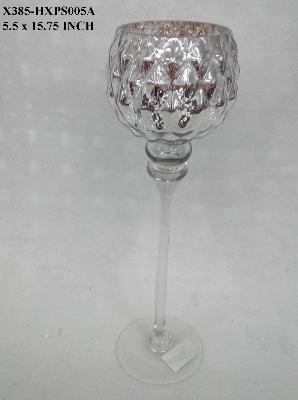 Command presence with this elegant glass candle holder in lustrous silver featuring sophisticated textured detailing. Reaching 15.75" in height with a 5.5" diameter base, its commanding stature creates an impressive architectural accent. The silvery finish reflects candlelight with captivating brilliance while the textured surface adds tactile depth and contemporary character. Perfect for formal dining arrangements, special occasions, or creating layered lighting displays on mantels and shelving, this holder serves as both functional accessory and sculptural statement. Its generous proportions maintain graceful balance while delivering substantial visual impact, making it ideal for those seeking dramatic height with refined restraint. An exceptional piece for discerning collectors who appreciate timeless design infused with modern artistry and understated luxury.