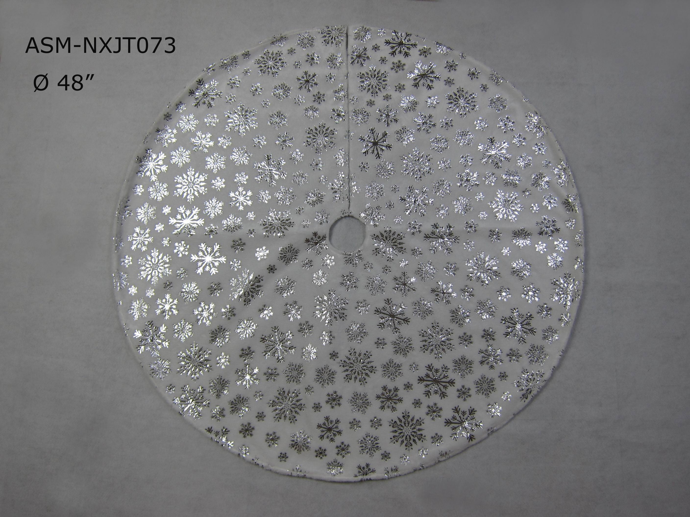 Fabric White/Silver Snowflakes Print Tree Skirt