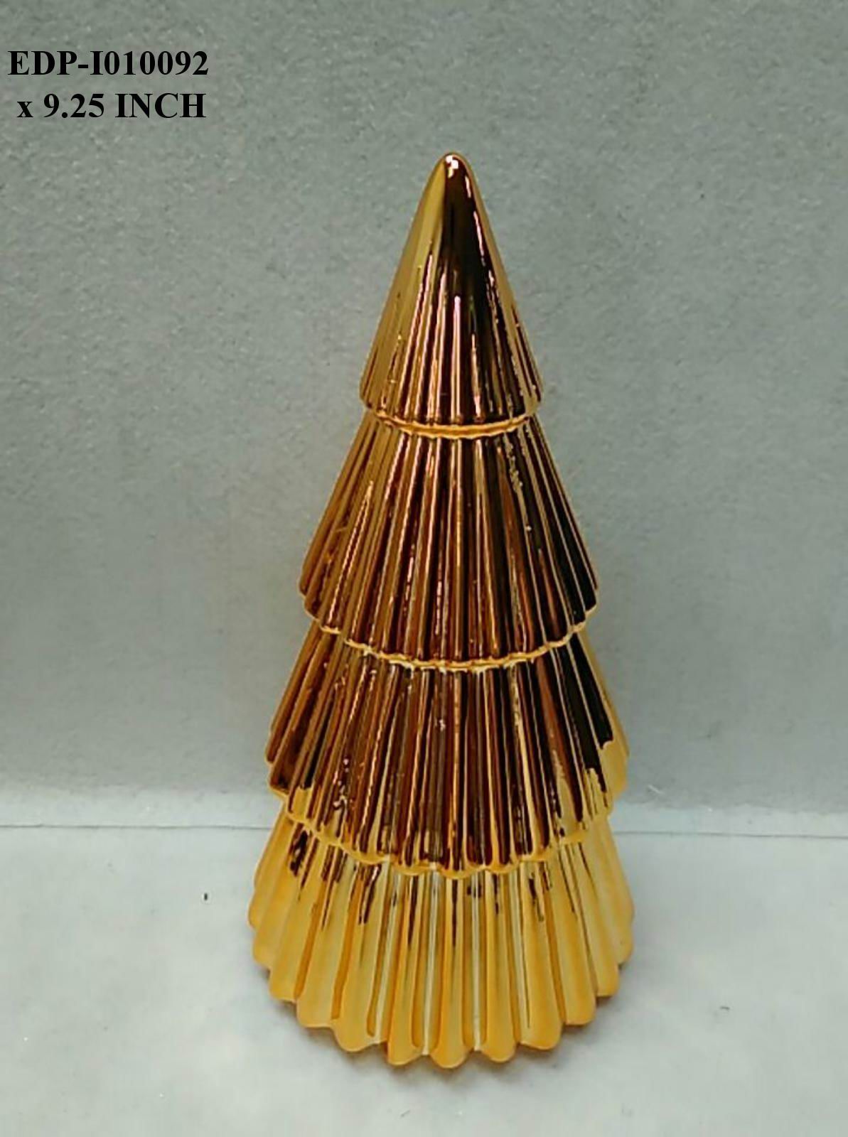 9.25" This 9.25-inch ceramic tabletop tree is finished with a refined electroplated gold coating, creating a luminous and elegant centerpiece. Its durable ceramic material ensures longevity, while the polished gold surface adds a sophisticated accent to any seasonal or everyday decor. Designed with expert craftsmanship for a timeless decorative statement.