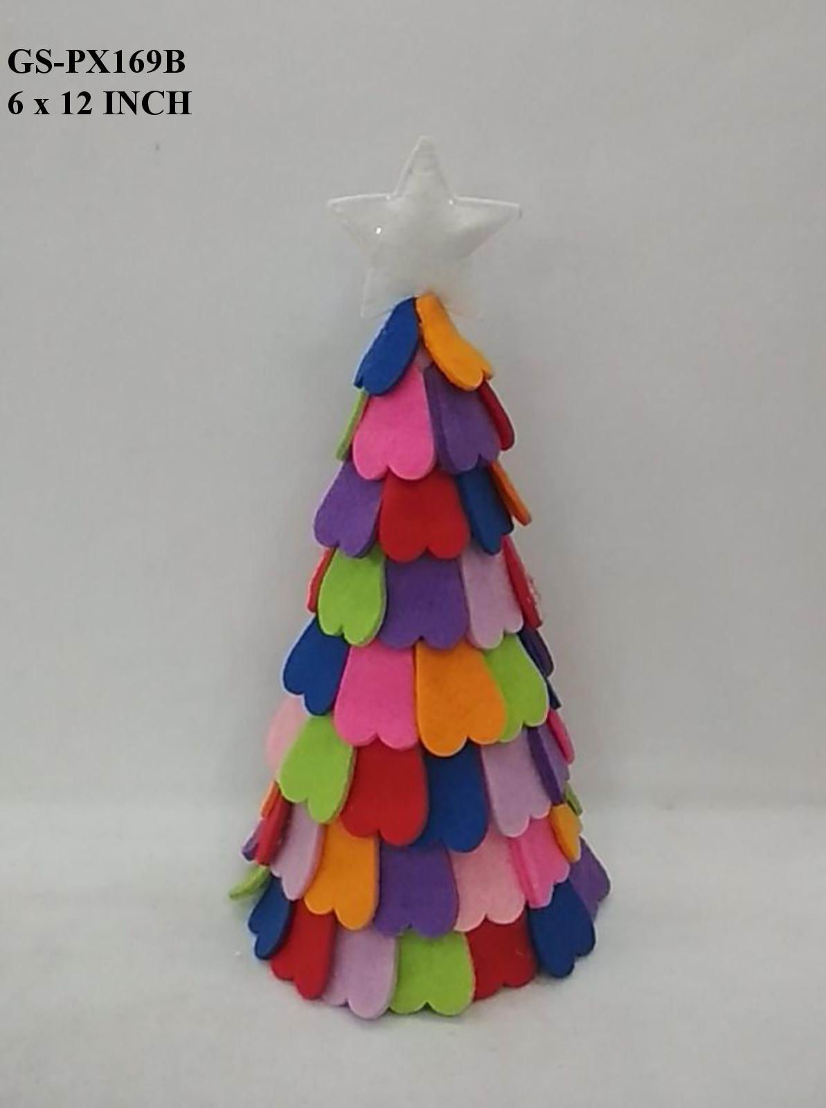 6.0x12.0x0.0 The Fabric Multicolor Table Top Tree offers a vibrant and tactile holiday accent, crafted from premium fabric in a rich blend of colors. Its compact design allows for versatile placement, adding a cheerful and textured dimension to tabletops or shelves. This decorative piece balances durability with seasonal charm, enhancing your festive decor with a sophisticated yet playful touch.