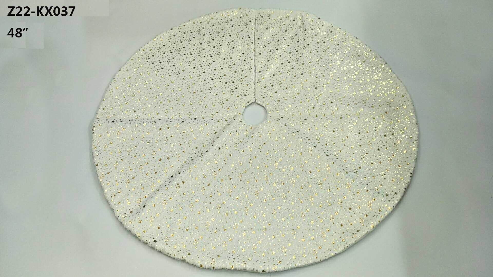 Introduce luxurious sophistication to your holiday display with this elegant gold fabric tree skirt, a refined accent that elevates your seasonal presentation. Spanning 48 inches in diameter, this generous size provides complete coverage for standard Christmas trees while concealing the base with understated opulence. The rich gold tone complements both contemporary and traditional holiday styling, coordinating seamlessly with metallic accents and jewel-toned ornaments. Constructed from quality fabric, the skirt delivers durability and premium aesthetic appeal, functioning as both practical base concealment and decorative statement piece. Perfect for creating curated holiday vignettes or anchoring sophisticated festive arrangements, this gold skirt brings warmth and refined elegance to your tree presentation, transforming it into a polished focal point that reflects your discerning taste.
